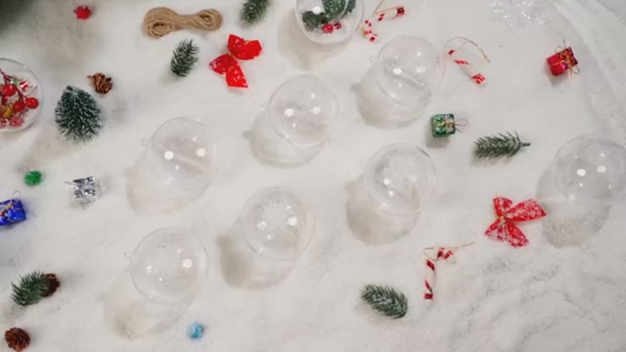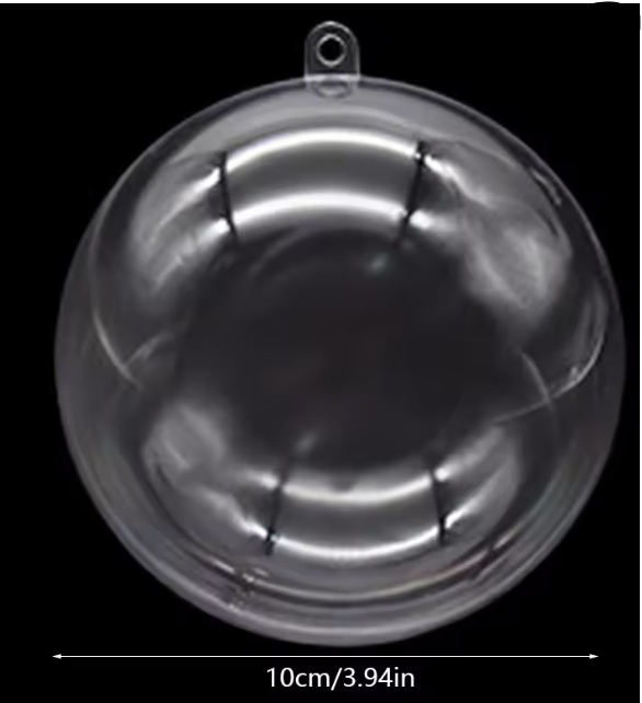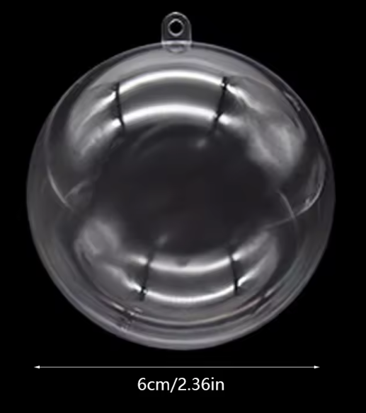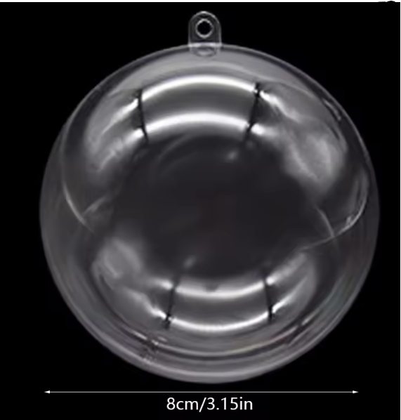 Each ball opens easily in the middle, so you can fill it with anything — snowflakes, confetti, dried flowers, candies, or tiny figurines. Hang them on your tree, string them across windows, or use them for handmade gifts.