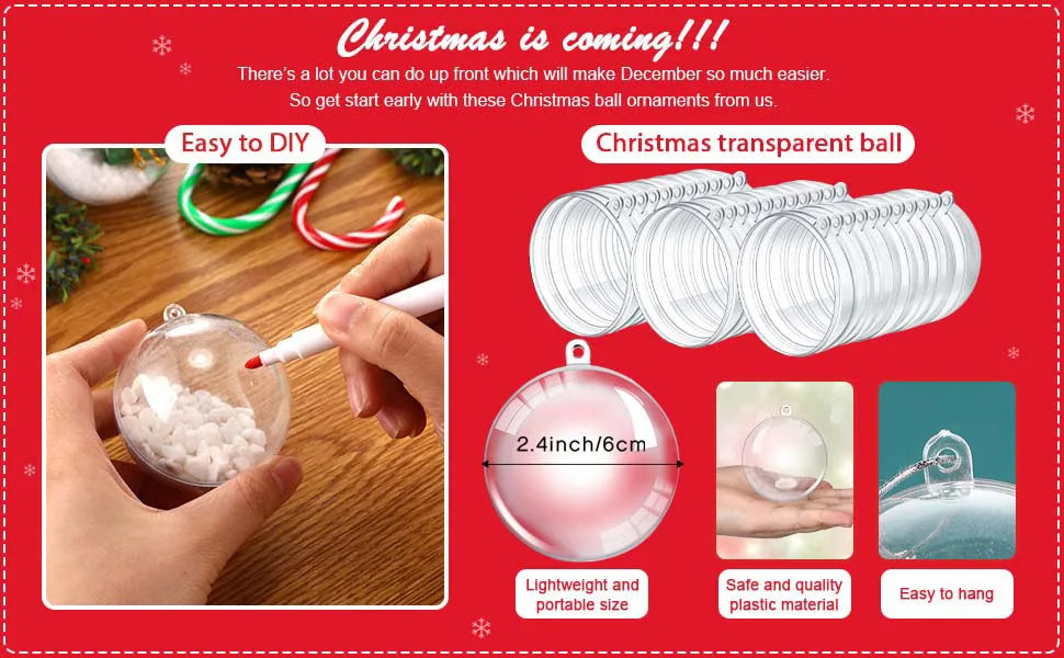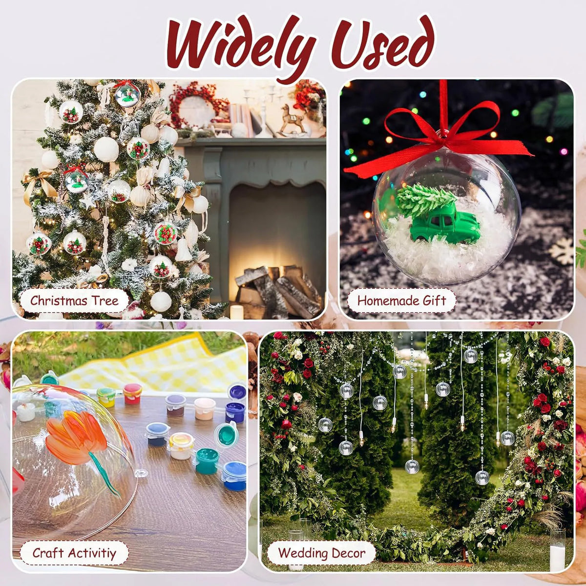 The practical design of these filling Christmas balls allows for easy placement of items inside; with a wide opening, you can easily fill these Christmas tree hanging ornaments balls with any suitable-sized objects to create your own unique DIY Christmas ornaments.